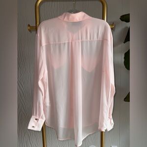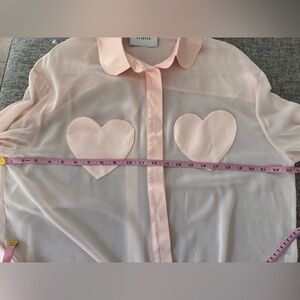 SLEEPER Montmartre Oversize Sheer Button-Up Heart Pocket Shirt Pink Sz: M