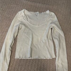 Brandy Melville White Long Sleeve Scoop Neck Top