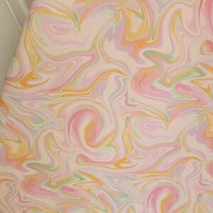 Vibrant dress with a swirl pattern. Features pink, yellow, and green hues. Perfect for a bold look. fully lined with shorts.