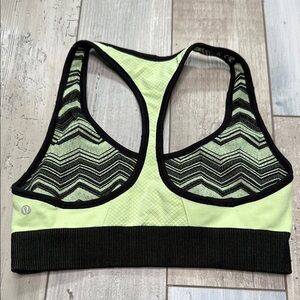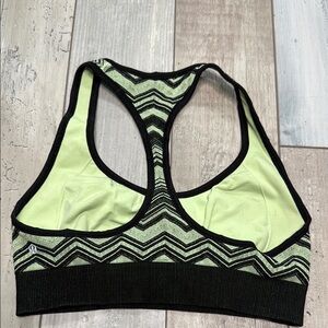 Stay comfortable and stylish with this chevron patterned sports bra. Featuring a sleek black and yellow design, it's perfect for workouts or casual wear. Reversible.