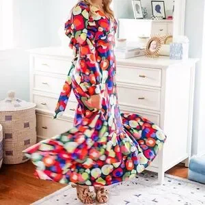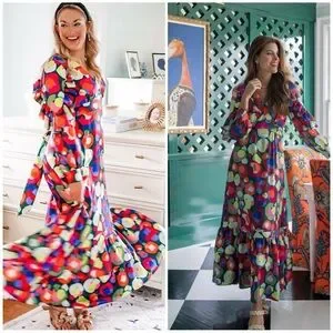 New Emily McCarthy Polka Dots Ruffle Maxi Long Sleeve Dress Floral Tiered 2XS