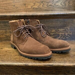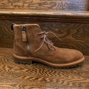 Aquatalia Men’s Leaston Suede Boot (Chestnut) Size 8.5. A versatile classic suede boot that goes from the office to the weekend. Extralight tech outsole provides maximum comfort and flexibility. Lace up and side zip closure. Pull tab at heel. Weatherproof suede upper, leather lining, leather & rubber sole. In excellent condition - worn less than a handful of times. Bundle for discounts and save on shipping!