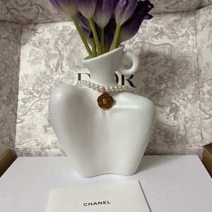 Authentic gold tone Valentino Beauty Logo Charm in nonbranded pearl choker necklace