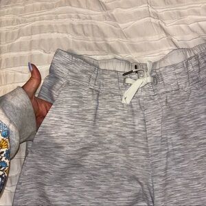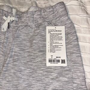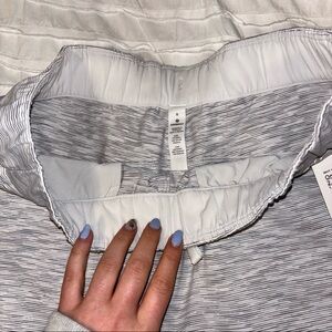 NWT white and grey stripe/heather Lululemon drawstring shorts. 2.5” inseam and has pockets!