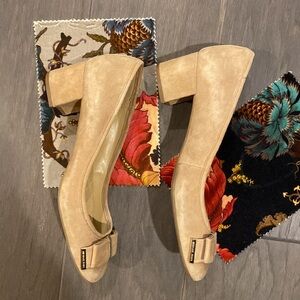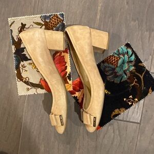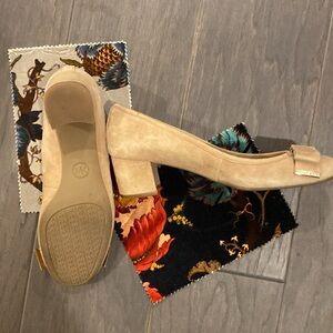 Michael Kors Women's Kiera Flex Mid Suede Pump Size 9 Beige w Bows