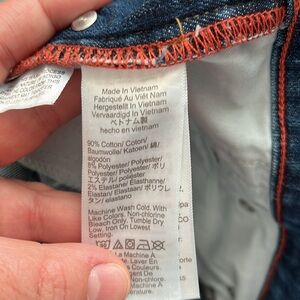 dark blue wash • stretchy • soft, comfy denim • exposed button fly