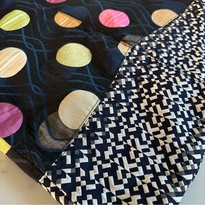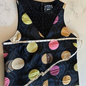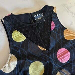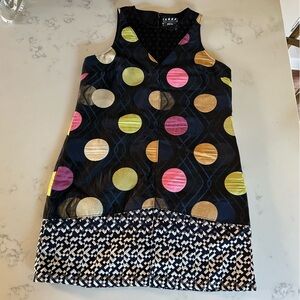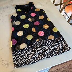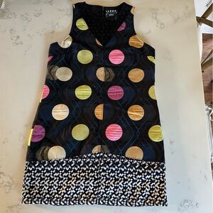 This sleeveless shift dress from Anthropologie is a great holiday or special event dress! Classic shape and fun mesh polka-dot neckline with a hint of shimmer on the large polka dot pattern on the dress and original geometric pattern on the hemline.