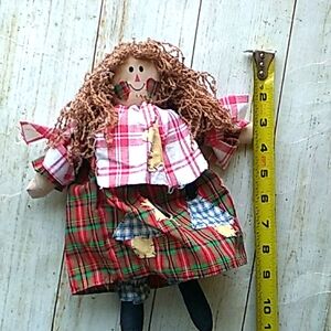 handstiched primitive style country Farmhouse raggedy ann cloth doll 11 in tall,can sit and pose for shelf sitting, so sweet and vintage looking