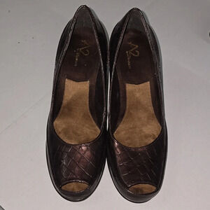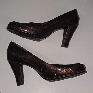 Aerosoles Big Ben Brown Crocodile Heels w Peep Toes Womens Size 8.5