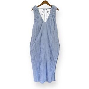 Free People Dress Agatha Midi Blue Long Oversize Boho Textured Lagenlook Medium