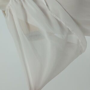 Women Draped Sleeve Bow Neck Chiffon Top White M/L classic victorian coquette gi