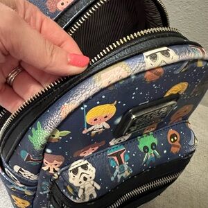 Loungefly Star Wars backpack/bag. I believe this is the mini sized. Good condition. Some slight wear (see photos) and inside could use a clean, could easily come out with a little Dawn dish soap :)