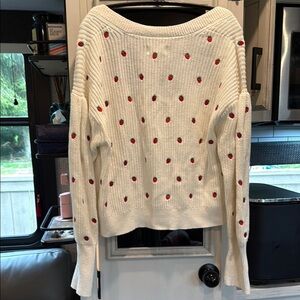 Super cute and playful for the summer! Couple small flaws as pictures. Size XL I wore this over some dresses when I would get chilly on summer nights ✨