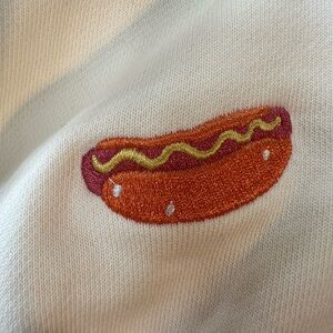 EUC Parke NYC hoodie- L/XL- cream color - super cute double sided NYC theme patches.