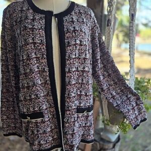 The waistband seam has come undone just a little bit at the side shown in photo. Covered by length of the top. Easy sewing mend if you're handy with a needle and thread, or can be worn as is. One light material snag on the front left leg near the knee shown in photo as well. Size large.