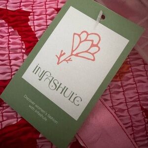 Upgrade your wardrobe with this stunning Infashule Floral Maxi Dress, featuring a vibrant red background with oversized pink and orange daisy prints. This dress is brand new with tags and made from lightweight, breathable fabric, perfect for warm-weather outings.