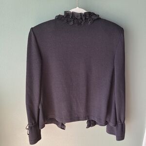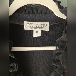 St. John Essentials Ruffle Tie Front Cardigan, Size 12 in Black, includes shoulder pads