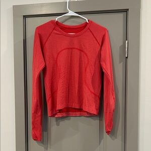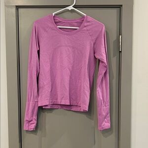 This trendy crop top from Lululemon Athletica features a boxy silhouette and a soft pink hue, perfect for a casual, laid-back look. The t-shirt's cropped length and short sleeves make it a stylish addition to any wardrobe, offering both comfort and a modern edge.