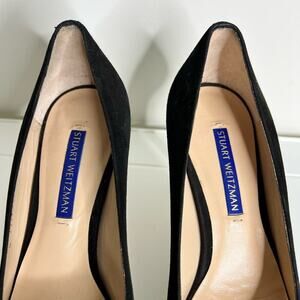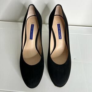 Stuart Weitzman Beatrix Heels Size 6 Black Suede Platform Pumps Stiletto Almond Toe