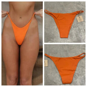 New! Montce neon plaid tie-up side tie bikini bottom Brazilian 19335