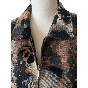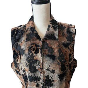 Christopher & Banks Vintage Floral Tapestry Vest With Zipper Closure & Collar