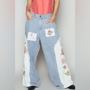 NWT Pol Belt pink blue Embroidered Riund wooden like buckle