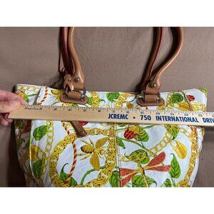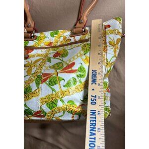 Tignanello Leather & Canvas Tote Bag Purse With Floral Insects & Chain Print