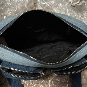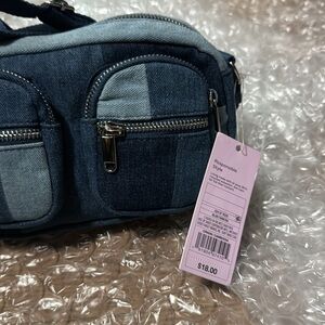 NWT light/dark denim patch Wild Fable crossbody purse using recycled materials.