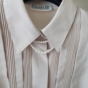 Korea vintage Button shirt With Pearl Necklace Detail