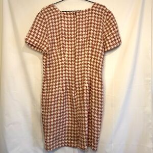 Vintage La Belle Pink And White Houndstooth Shift Dress With Cap Sleeves Size 13