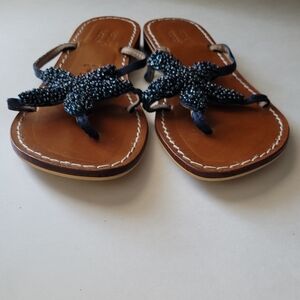 Beautiful dark blue women's starfish sandals with beads and sequins to add some sparkle to your summer wardrobe. Features a genuine leather footbed with white stitching. Like new. Excellent condition. Size 7