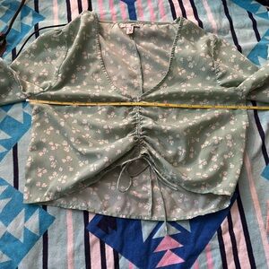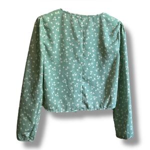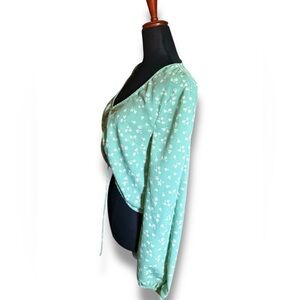 Amuse Society | Floral V-Neck Long Sleeve Top - Green | Size Medium NWOT