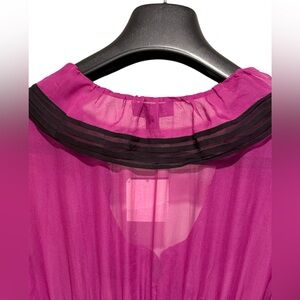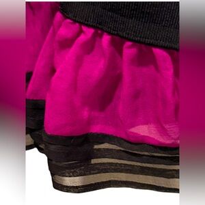 Bebe NWT Size M Pretty Pink Purple Black Silk High Waisted Ruffled Dress. (0573)