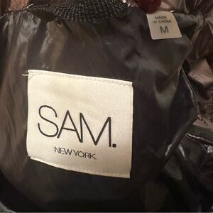 The Freestyle putter jacket by SAM. is filled with premium down and finished with a chic and cozy stand collar.