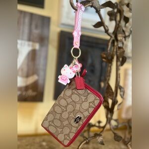 This Coach tote bag showcases a striking red and blue color palette, making it a standout accessory. Its structured design ensures durability and style, while the spacious interior offers ample room for essentials. Ideal for everyday use, this tote combines functionality with a touch of elegance. Coach long zip wallet has multiple credit card slots and coin compartment.