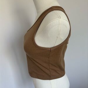 Elevate your style with this chic brown one-shoulder ribbed top. Perfect for any occasion, this top offers a modern and elegant look.