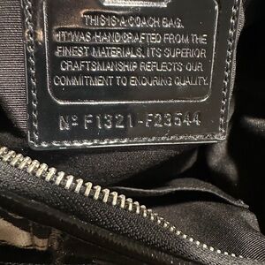 Stylish and versatile, this Coach bag features a chic black and gray design. Perfect for any occasion, it combines elegance with functionality. Zipper works perfectly, no stains or tears. Has a very soft fabric strap