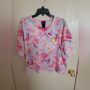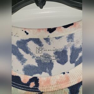 No Boundaries Stretchy Ribbed Tie Dye Long Sleeve Blouse 3xl! This top is gorgeous, and has the prettiest colors throughout it. It is super stretchy and comfortable, with a flattering ribbing effect throughout. It is a great top to wear alone or to layer with. It is preowned but is in excellent condition with no noticed flaws, it was only worn once. It does fit true to size with stretch, but is more of a form fitted top.