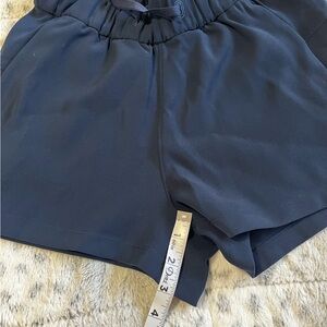 Lululemon On The Fly Navy Blue Elastic Waist Shorts