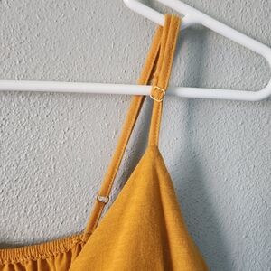Elevate your style with this chic mustard yellow sleeveless top. Perfect for any occasion, this top offers a flattering fit and vibrant color.