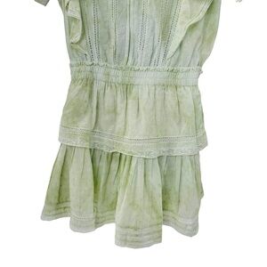 LoveShackFancy Natasha Green Lace Embroidered Tiered Ruffle Mini Dress Size L