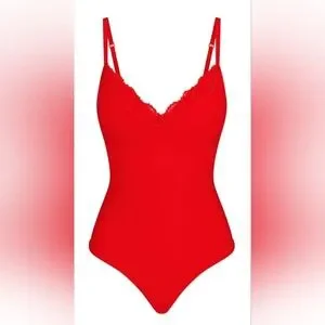 💕NWT SKIMS Fits Everybody Push Up Bodysuit Lace Red Cayenne L
