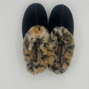 Skechers Fortress Clogs Leopard Print Faux Fur Shoes Slippers