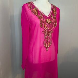 Lucky & Coco Hot Pink Embellished Sheer Tunic Top S