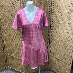 This Topshop blazer showcases a vibrant red and white gingham pattern, offering a fresh and preppy look. Its tailored silhouette and lightweight fabric make it perfect for spring or summer occasions. The structured design with notched lapels adds a sophisticated touch to any ensemble.