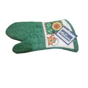 oven mitt, cotton oven mitt, kitchen glove, vintage kitchenware, sunflower design, green oven mitt, Signature collection, garden kitchen decor, cooking mitt, potholder, retro oven glove, floral kitchen mitt, durable oven mitt
