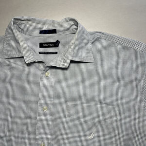 Nautica Men’s XL Blue Checked Button Up Long Sleeve Shirt 100’s Two Ply Cotton