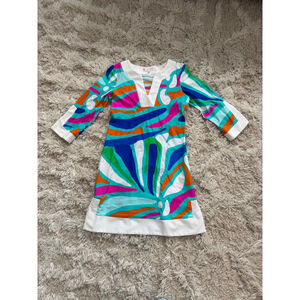 This is a pre-owned Banana Republic blazer, size 2. The exterior is a light beige color, made of 64% polyester, 34% viscose, and 2% elastane. It features a single-button closure, notched lapels, and two front pockets. The interior lining is a light beige with small polka dots, made of 100% polyester. There are three decorative buttons on each sleeve cuff. The blazer shows no visible signs of wear.