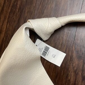 Brand new with tags. Very popular Love Knot bag from designer Anthropologie. This faux leather is so soft and sumptuous! Bag is clean with no flaws, see pics. One button snap closure at top middle of bag, see pics. Color is called Ivory. Any questions please ask! Thanks for looking:)