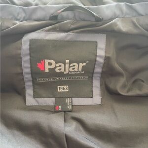 Stylish navy blue winter parka with a fur-lined hood. Features multiple pockets and a zip-up front.Pajar Canada size kids 6. Excellent condition, worn few times.